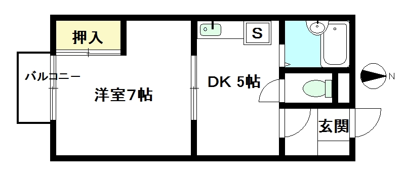 1DK 洋室7帖 DK5帖