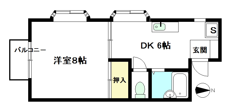 1DK 洋室8帖 DK6帖