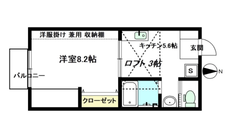 1K 洋室8.2帖 K5.6帖 ロフト3帖